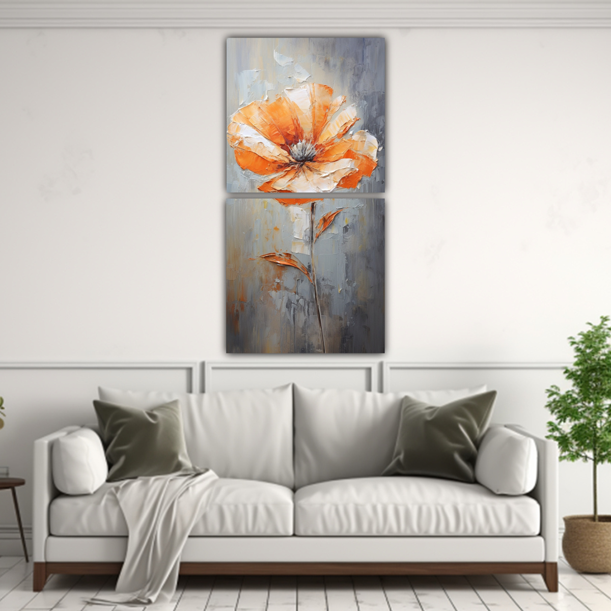 Decora tu baño con nuestro cuadro de pintura de flores naranjas estilo decorativo Con colores gris, azul marino grisáceo, plateado, coral y chocolate, este diseño exclusivo agregará un toque de elegancia y frescura a tu espacio Nuestros cuadros están impresos en tela de alta calidad con bastidores de madera, lo que garantiza su durabilidad y resistencia Además, ofrecemos los precios más baratos del mercado y las entregas más rápidas, con envío gratis en Santiago y envíos a regiones express