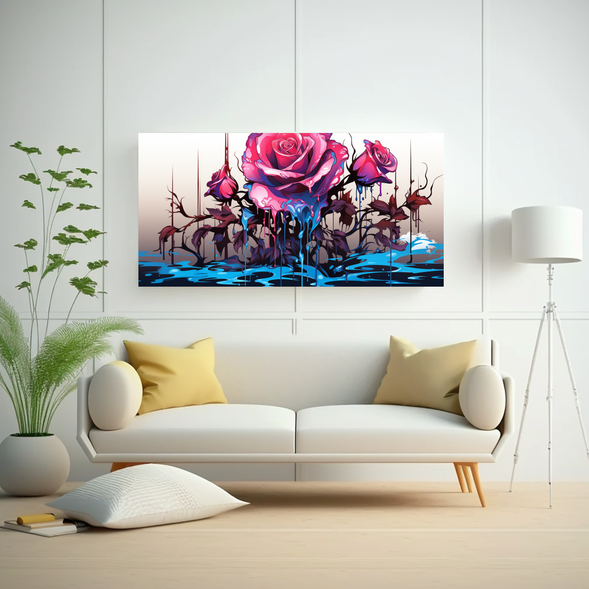 El cuadro de sala con logo en lienzo de color turquesa oscuro y rosa derretido es perfecto para decorar tu sala con estilo Con una impresión de alta definición y un marco de madera de pino de alta calidad, este cuadro crea un aspecto 3D más realzado y moderno Envío rápido y gratuito en Santiago, y envíos express a regiones