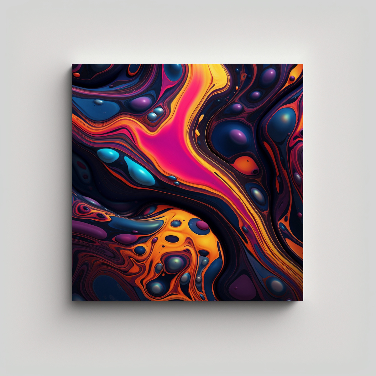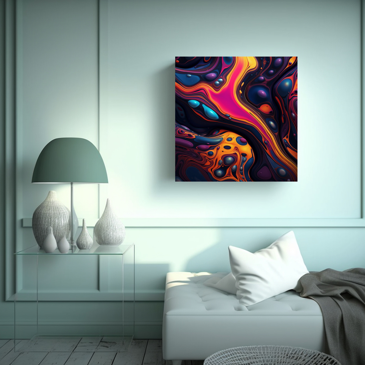 Este cuadro de tela con impresionante patrón de derrame de aceite se verá espectacular colocado en el salón de tu hogar, sobre un mueble con tonos dorados, añadiendo un toque moderno y de elegancia a la decoración Combínalo con cojines de colores similares para crear una armonía visual perfecta