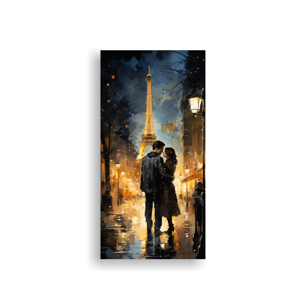 Cuadro De Tela Decorativo Dos Hombres Besándose En Las Calles De París Durante La Noche Con Cielo Estrellado.