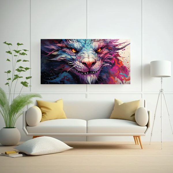 Cuadro De Tela Dragón Arcoíris Y Morado Neonoir