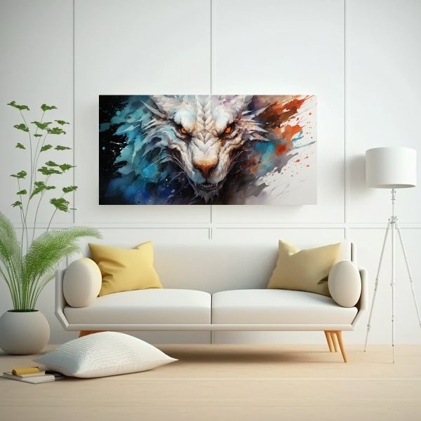 Este Cuadro de Tela con Dragón en Acuarelas y Blancos quedará espectacular en tu sala de estar, creando un punto focal único Combínalo con muebles en tonos neutros y elementos decorativos en plateado y turquesa para lograr un ambiente sofisticado y moderno