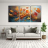 Este cuadro de tela en bastidor con danza abstracta de hojas de otoño es perfecto para decorar tu sala de estar o tu estudio Combina a la perfección con muebles de tonos neutros como beige o gris claro, creando un contraste elegante y sofisticado Puedes colocarlo sobre un sofá o en una pared vacía para darle vida y personalidad a tu espacio ¡Atrévete a darle un toque de color y estilo a tu hogar con este hermoso cuadro de DecoCuadros!