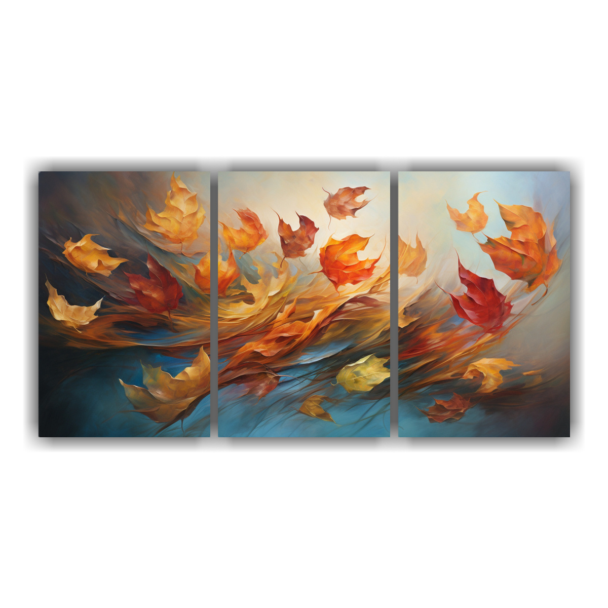 Cuadro De Tela En Bastidor Con Danza Abstracta Dinámica De Hojas De Otoño Capturadas En