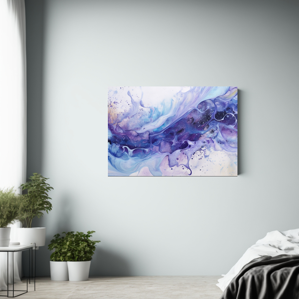 Cuadro De Tela Moderno Con Mezcla Delicada De Azul, Morado Oscuro Y Negro