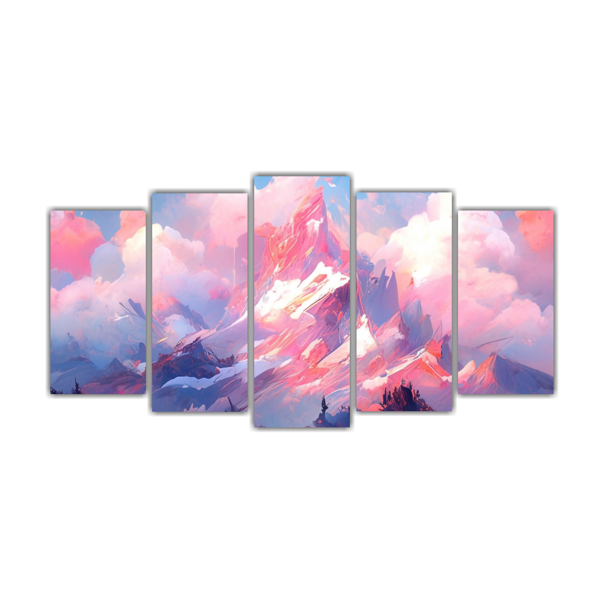 Cuadro De Tela Moderno Relieve Picos Y Cordilleras Famosas En Tonos Rosados