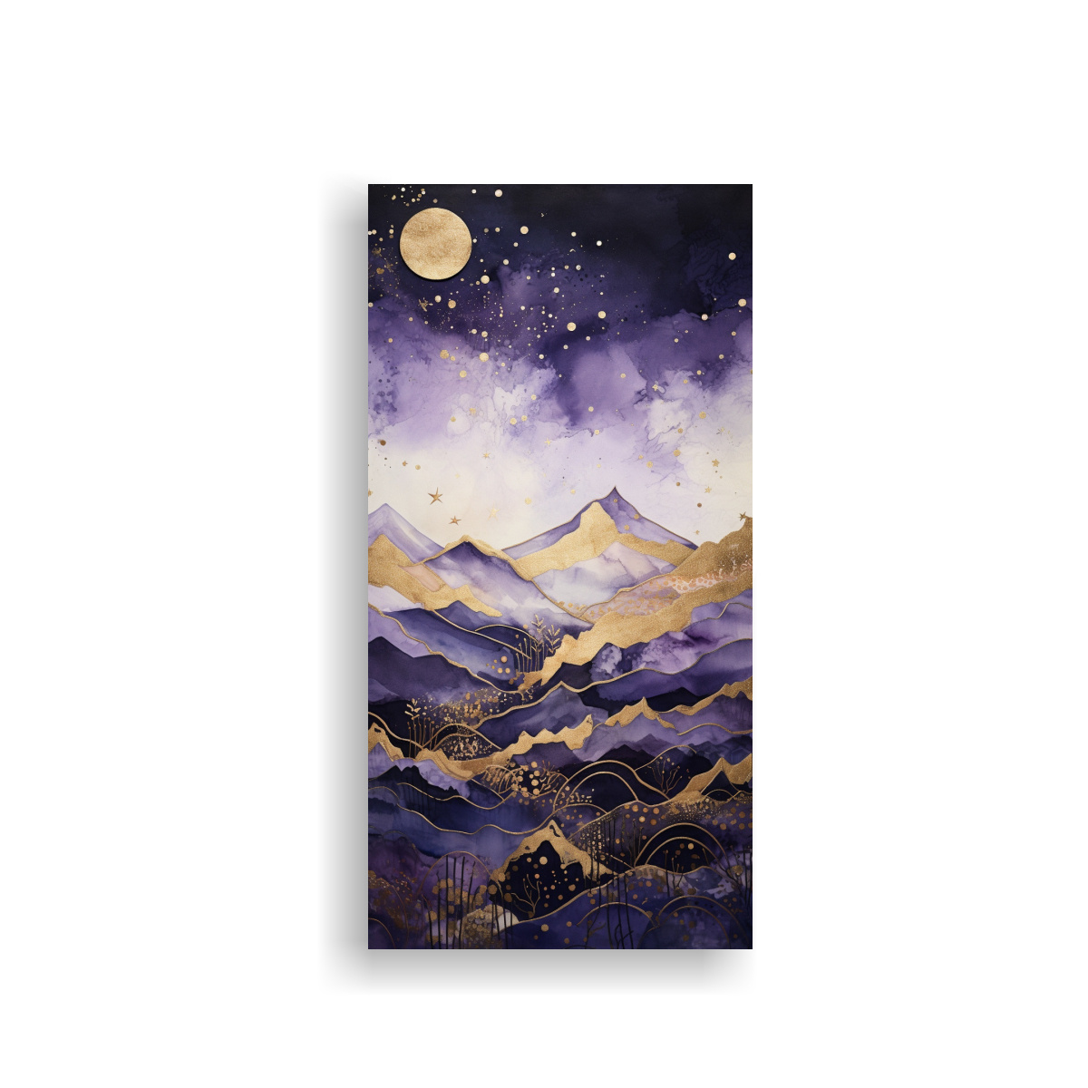 Este cuadro de tela montaña con estilo elegante y cálido se vería perfecto en tu sala de estar Colócalo sobre un sofá gris para crear un contraste elegante y combínalo con cojines en tonos plateados y azules para resaltar los colores del cuadro Añade una lámpara de mesa en tonos lila o gris para completar la decoración ¡Transforma tu sala de estar en un espacio sofisticado con este cuadro de DecoCuadros!