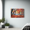Cuadro De Tela Para Comedor: Hojas De Arce Rojo Cayendo En Un Bosque Vacío.