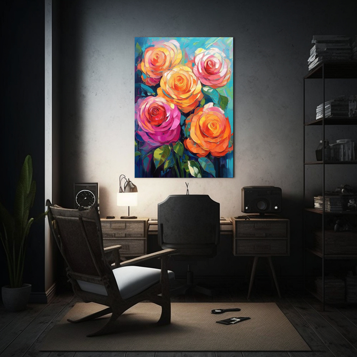 Cuadro De Tela Sublimada Con Rosas Al Estilo De Peter Max