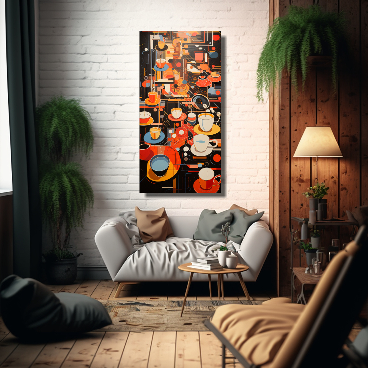 Cuadro De Tela Vintage Enigmático: Ritmos Abstractos De Un Animado Café Con Deliciosos Cafés.