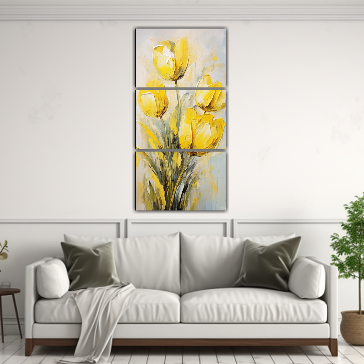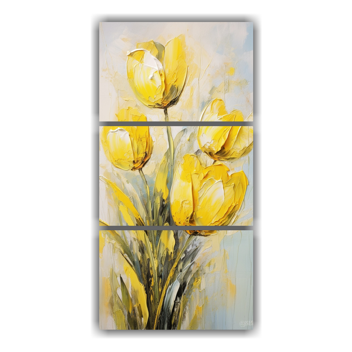 Cuadro De Tres Composiciones Verticales Juveniles De Tulipanes Amarillos