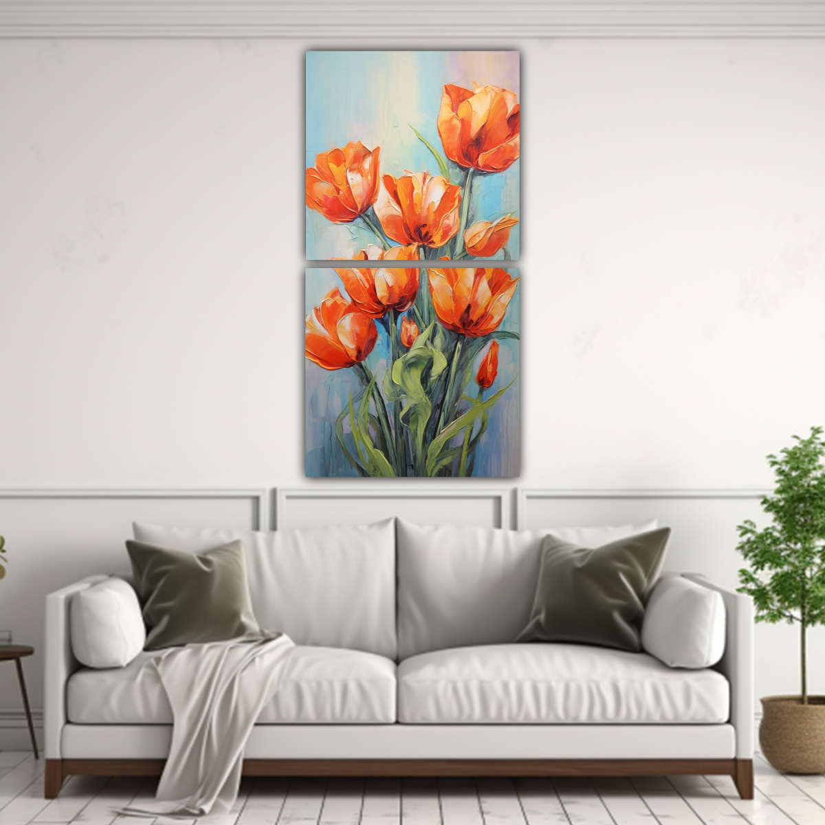Cuadro De Tulipanes Naranjas En Tela, Estilo Decorativo Moderno
