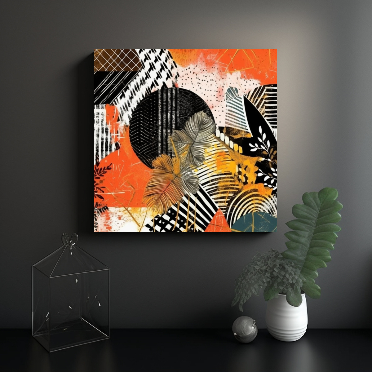 Coloca este Cuadro Decorativo Abstracto Calidez Exótica en el salón principal de tu hogar para crear un punto focal sofisticado Combínalo con muebles en tonos neutros y elementos decorativos en amarillo claro para resaltar su belleza