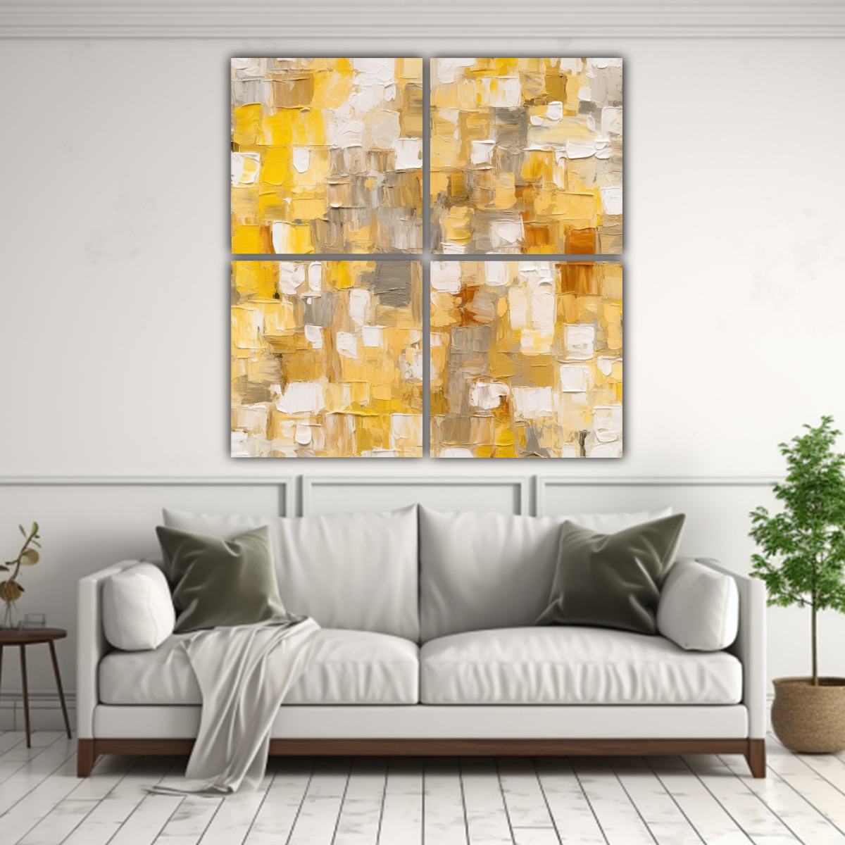 Cuadro Decorativo Abstracto Con Cuadros Grandes Color Topo Y Amarillo Y Blanco De Naturaleza Viva.