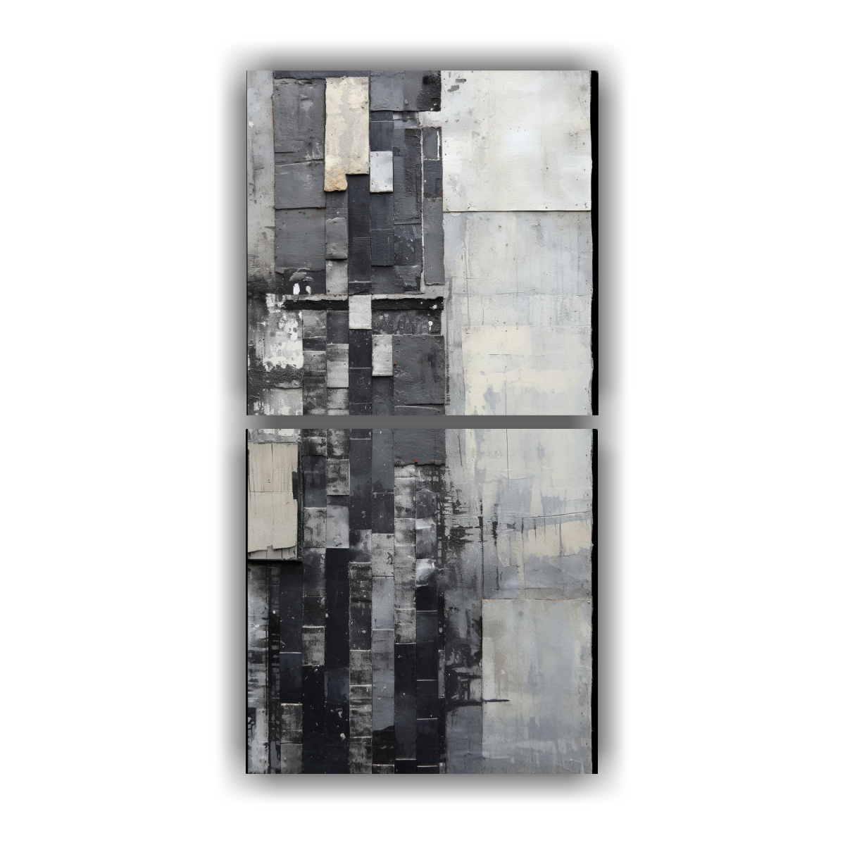 DecoCuadros te presenta el Set 2 Cuadro Decoración fantástico Abstract collage of textures and urban grayscale Colores plateado, azul marino grisáceo, dorado y gris se unen en esta impresión de alta calidad sobre tela Descubre nuestros diseños exclusivos, precios económicos y envío express a regiones ¡Compra ahora!