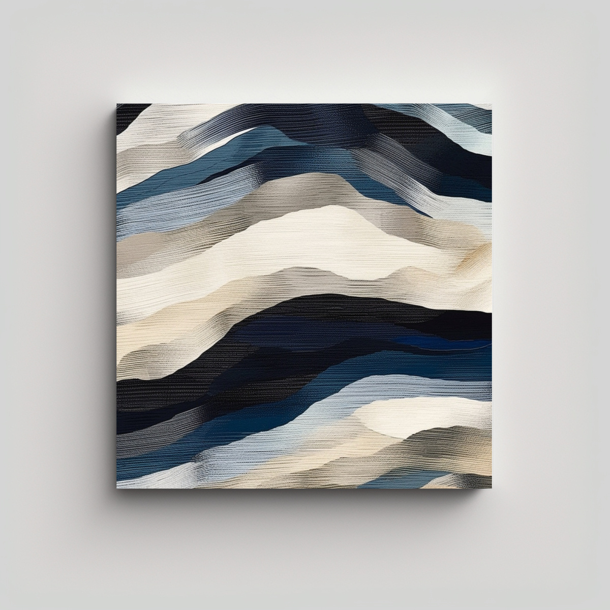 Para realzar la elegancia de tu sala de estar, coloca este Cuadro Decorativo Abstracto Azul y Gris sobre un sofá blanco o una pared en tonos neutros Combínalo con cojines en azul marino o accesorios plateados para un ambiente armonioso y sofisticado