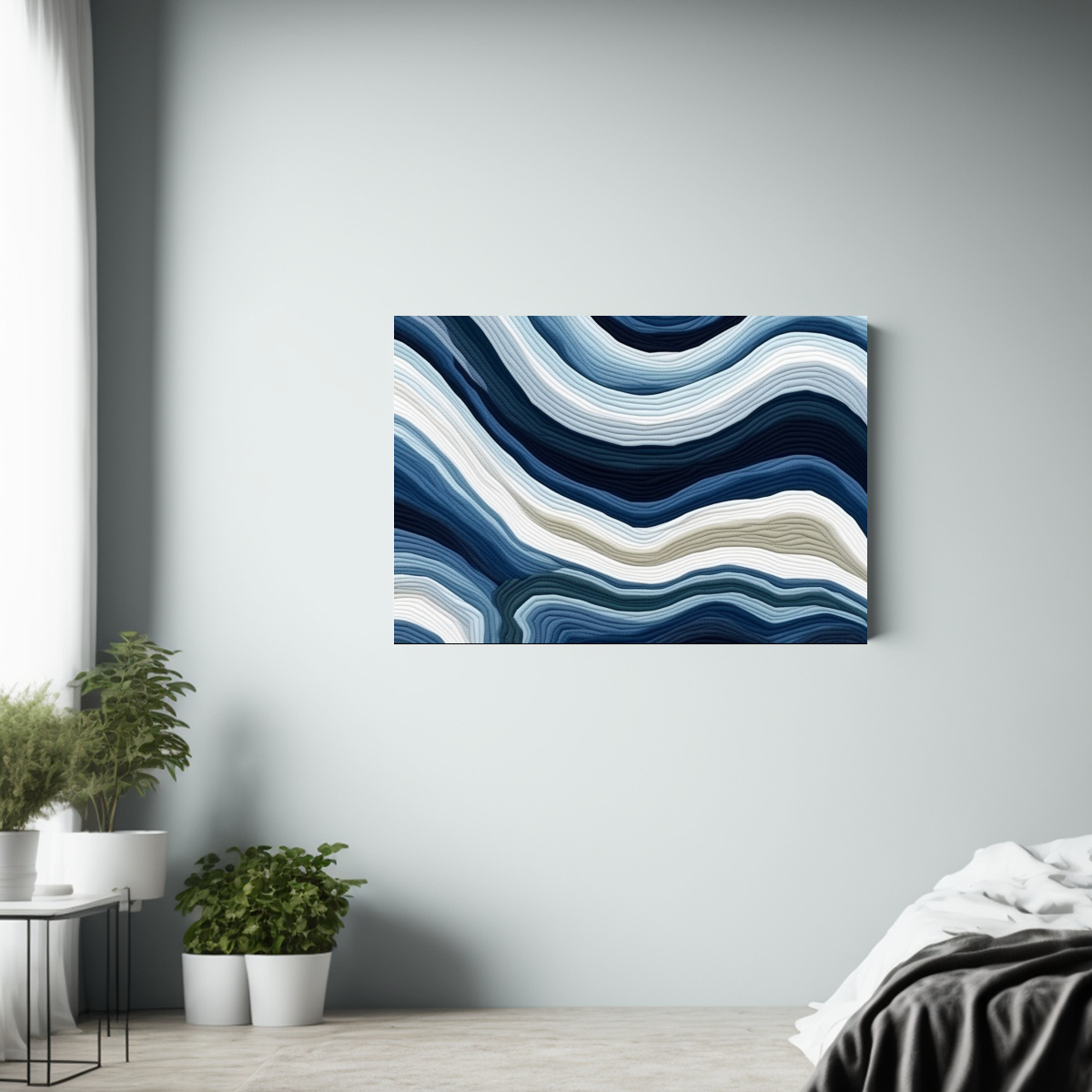 Coloca este cuadro en tu sala de estar para crear un punto focal elegante y contemporáneo Combínalo con muebles en tonos neutros o accesorios en verde azulado para un contraste armonioso y sofisticado