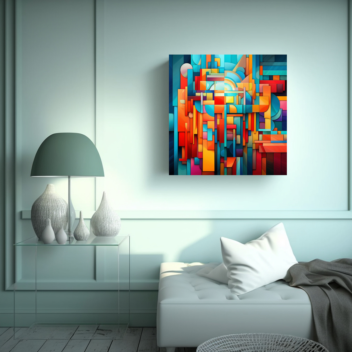 Este cuadro decorativo Arte Dibujo Felicidad abstracción arte geométrico quedará perfecto en tu sala de estar Combínalo con muebles en tonos neutros como beige o gris claro, y agrega detalles en los colores del cuadro para crear un ambiente alegre y moderno Colócalo sobre un sofá o una repisa para destacarlo y disfrutar de su diseño exclusivo ¡Dale un toque de color y felicidad a tu hogar con este cuadro de DecoCuadros!