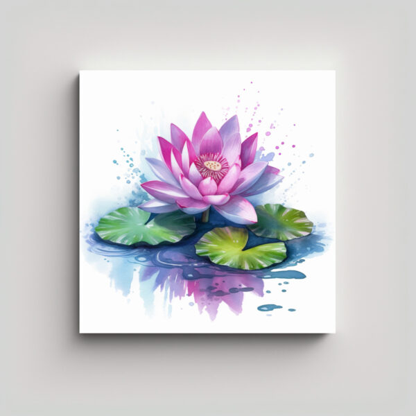 Cuadro Decorativo Canva: Loto Acuarela En Agua Para Interiores