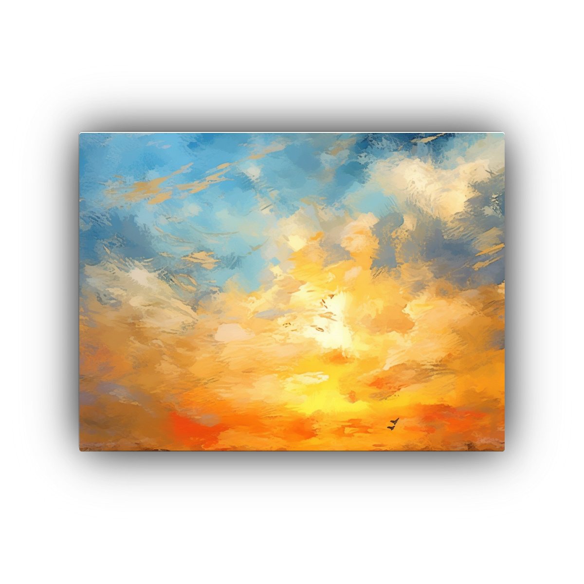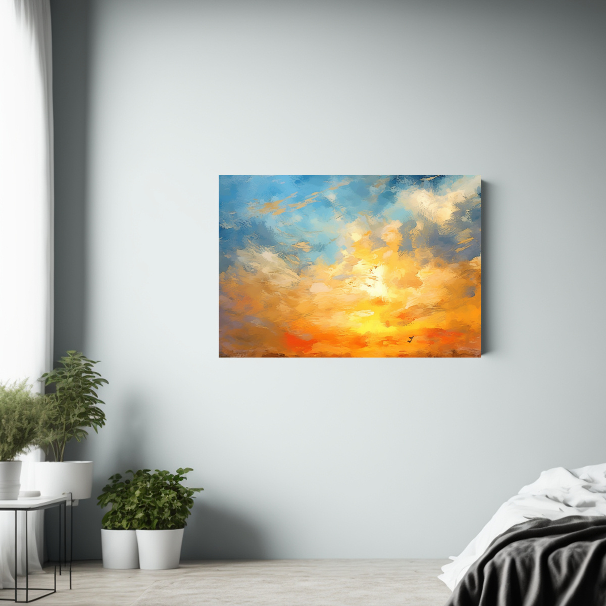 Este cuadro del Cielo Hermoso en Arte de Pared es ideal para colocar en la sala de estar sobre un sofá de color neutro, creando un contraste vibrante y relajante Combínalo con cojines en tonos suaves para un ambiente acogedor