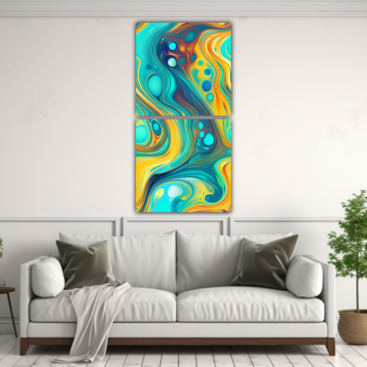Coloca el cuadro Armonía de Líquidos en tu sala de estar o comedor para darle un toque moderno y elegante Combina los colores del cuadro con cojines y accesorios en tonos neutros para resaltar su belleza ¡Crea un ambiente armonioso y sofisticado en tu hogar!