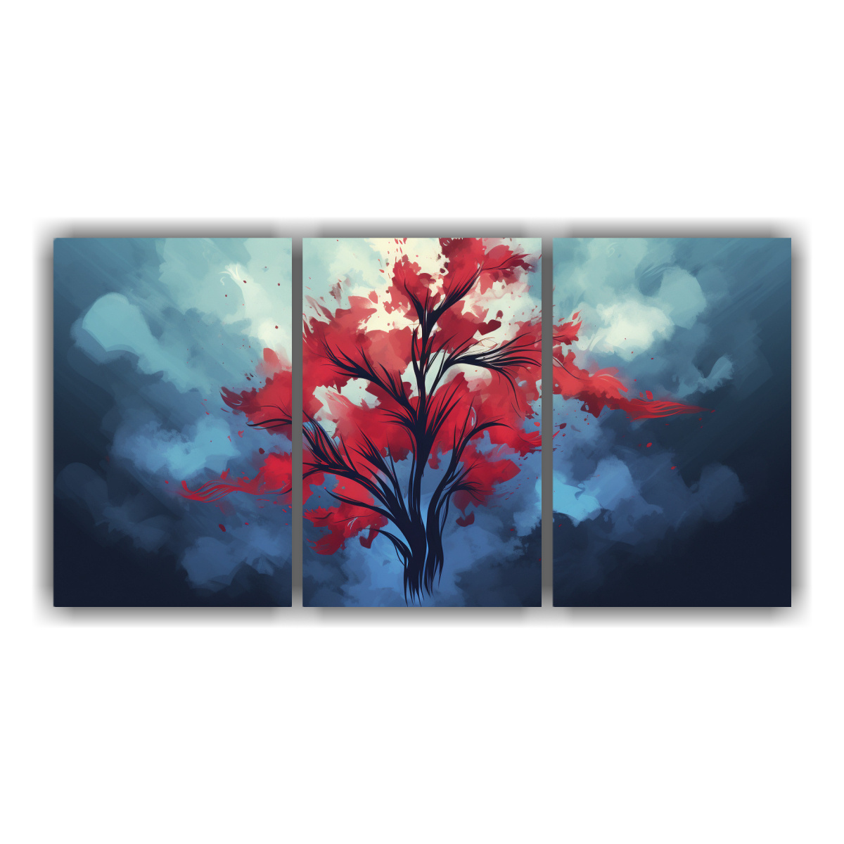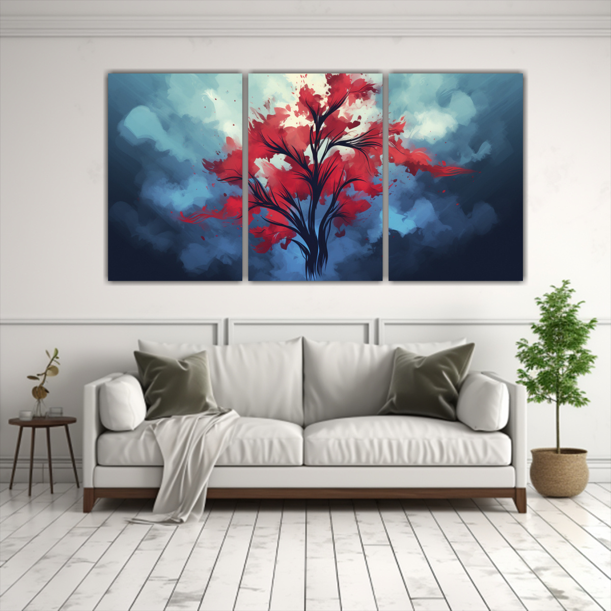Cuadro Decorativo Composición Equilibrada De Un árbol Tropical En Colores Rojo Y Azul Con Atmósfera Neonoir De Tres Canvas