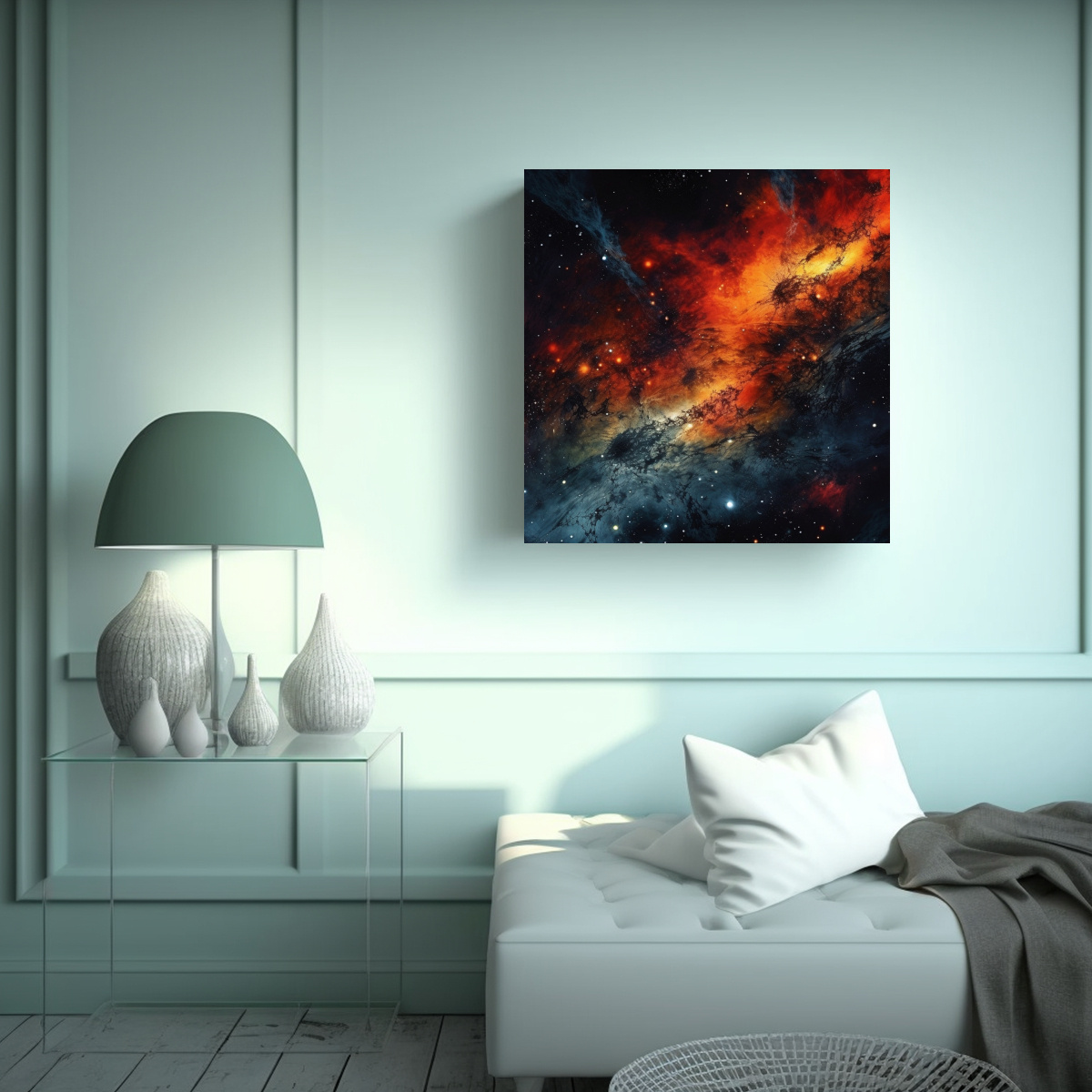 Recomendamos colocar este cuadro en un ambiente con tonos oscuros y elementos metálicos para crear un estilo moderno y sofisticado