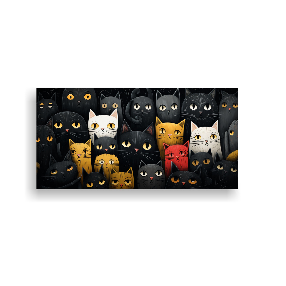 Renueva tu hogar con este cuadro decorativo de gatos negros con suéter, ideal para añadir un toque de diversión y elegancia a tu espacio Confeccionado con tela de alta calidad y bastidores de madera para asegurar durabilidad