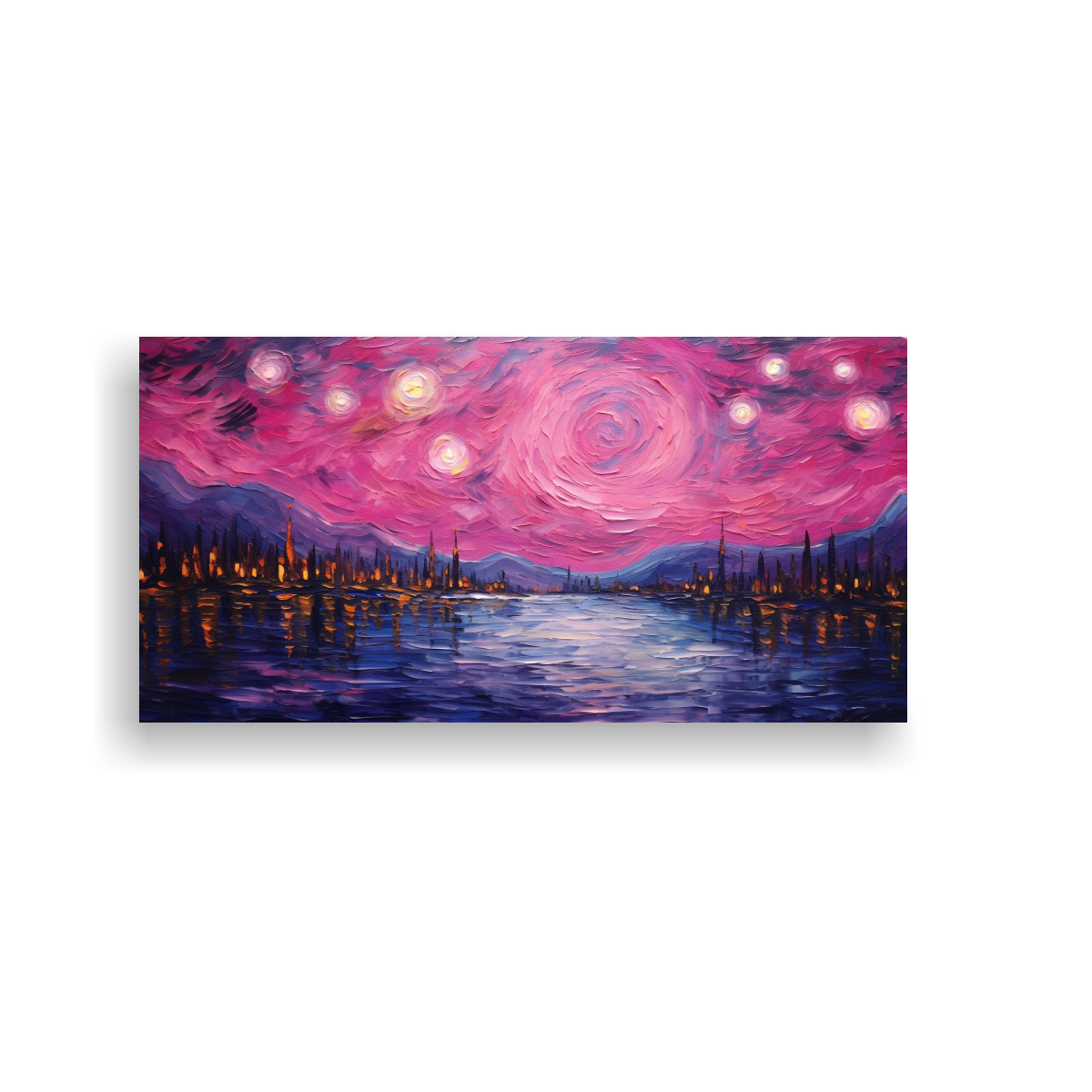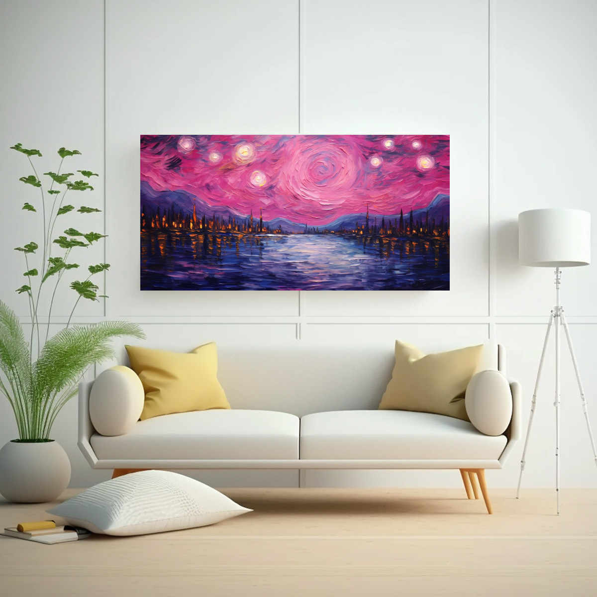 Este cuadro rosa estrellado por Van Gogh es perfecto para darle un toque de elegancia y modernidad a tu sala de estar Colócalo sobre un sofá de tonos neutros para resaltar su intensidad y combinarlo con cojines en colores plateados y grises para crear un ambiente sofisticado y acogedor