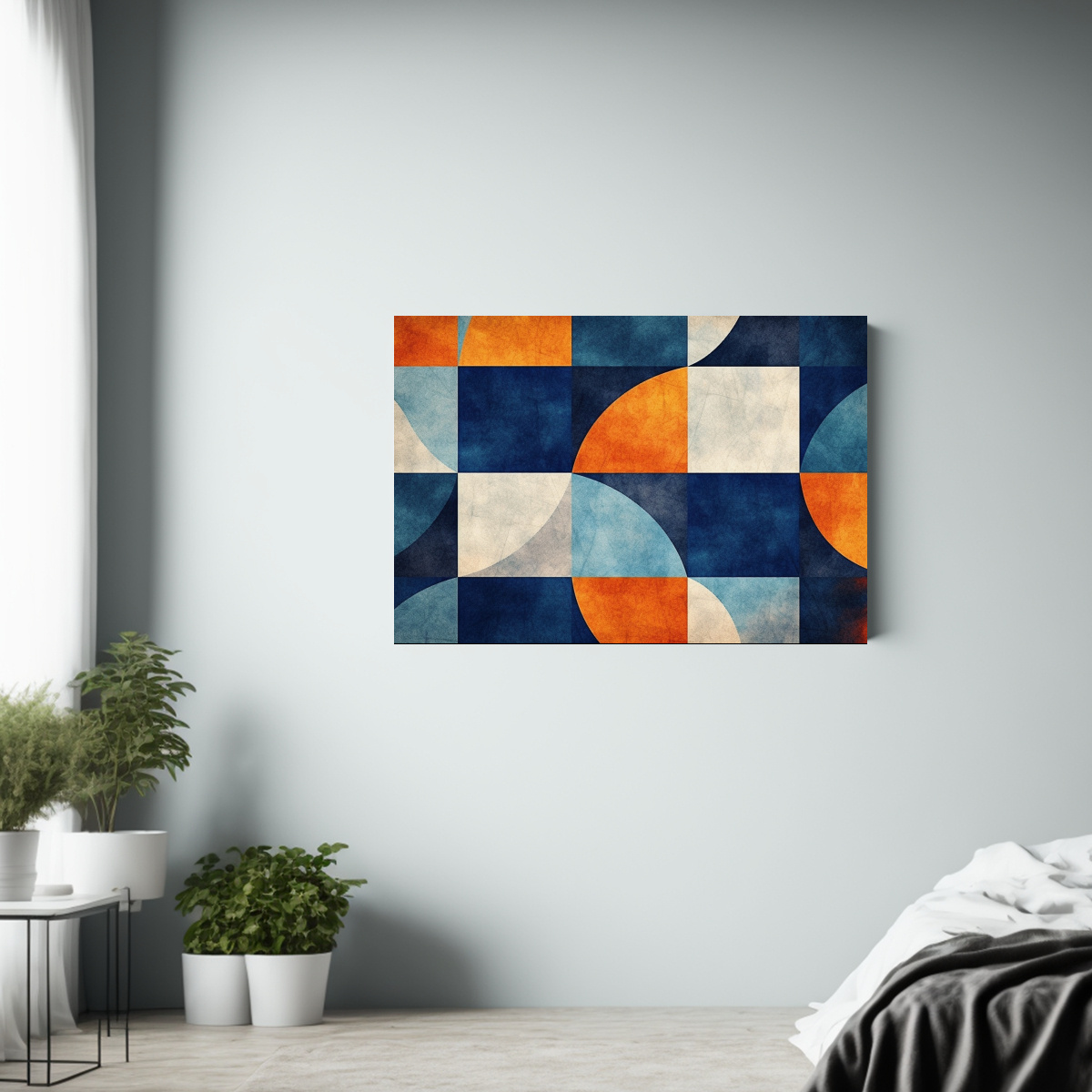 Este cuadro es perfecto para dar vida a una pared en tu sala de estar o estudio Combínalo con muebles en tonos neutros como beige, gris y negro para resaltar su vibrante paleta de colores ¡Crea un ambiente moderno y lleno de energía con este cuadro geométrico!