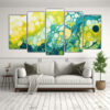 Este cuadro decorativo con textura funky en colores vibrantes amarillo, verde, azul y blanco es perfecto para decorar tu sala de estar Puedes colocarlo sobre un sofá de color neutro para que resalte y genere un contraste vibrante También puedes combinarlo con cojines en tonos verdes y azules para crear una armonía visual ¡Dale un toque de estilo y frescura a tu hogar con este cuadro de DecoCuadros!
