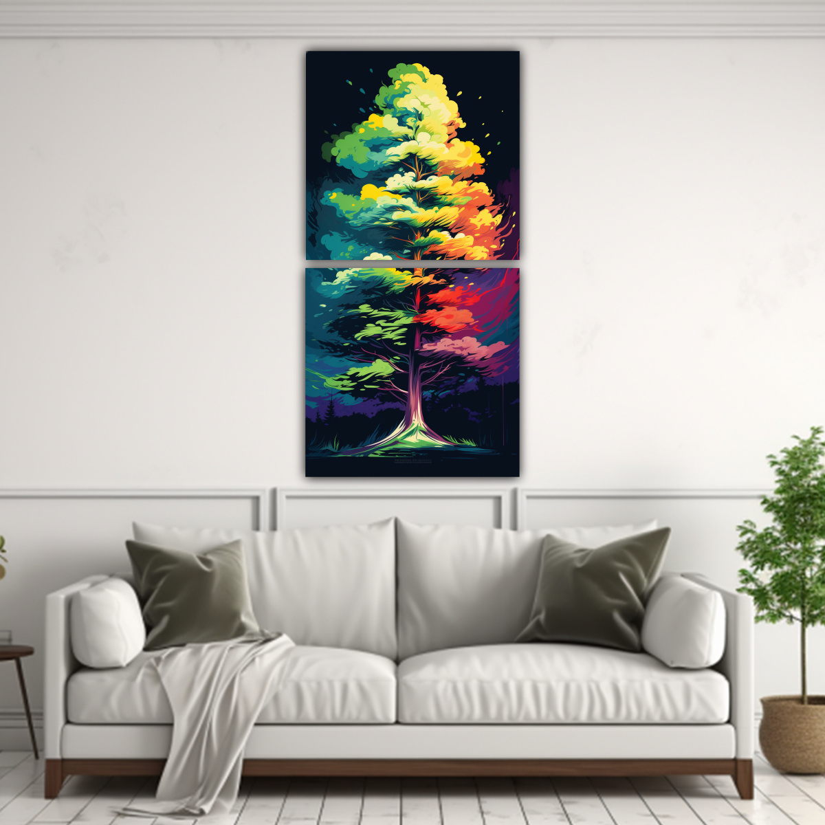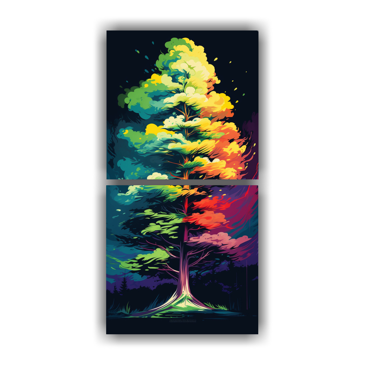 Cuadro Decorativo De Alta Calidad Con Efecto Visual De Un árbol De Secuoya En Colores Del Arco Iris Y Atmósfera Neonoir