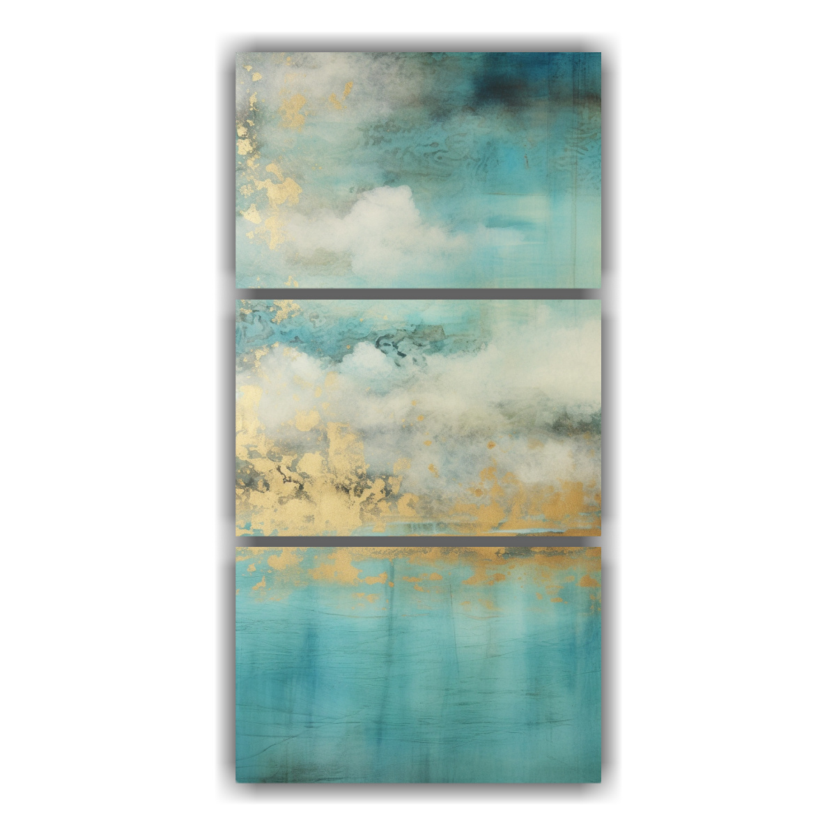 Adquiere el cuadro decorativo de alta calidad Tres Artes en turquesa, verde azulado y dorado Confeccionado en tela de alta calidad y bastidores de madera, este cuadro le dará un toque especial a tu hogar Destacamos por nuestra excelencia y precios económicos