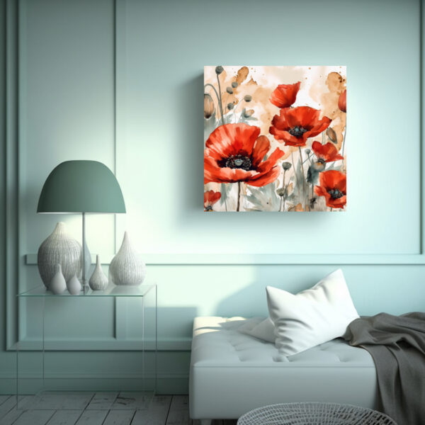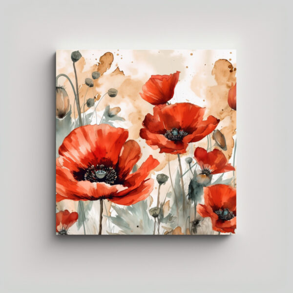 Cuadro Decorativo De Amapolas Acuarela En Tela Bastidor – Living