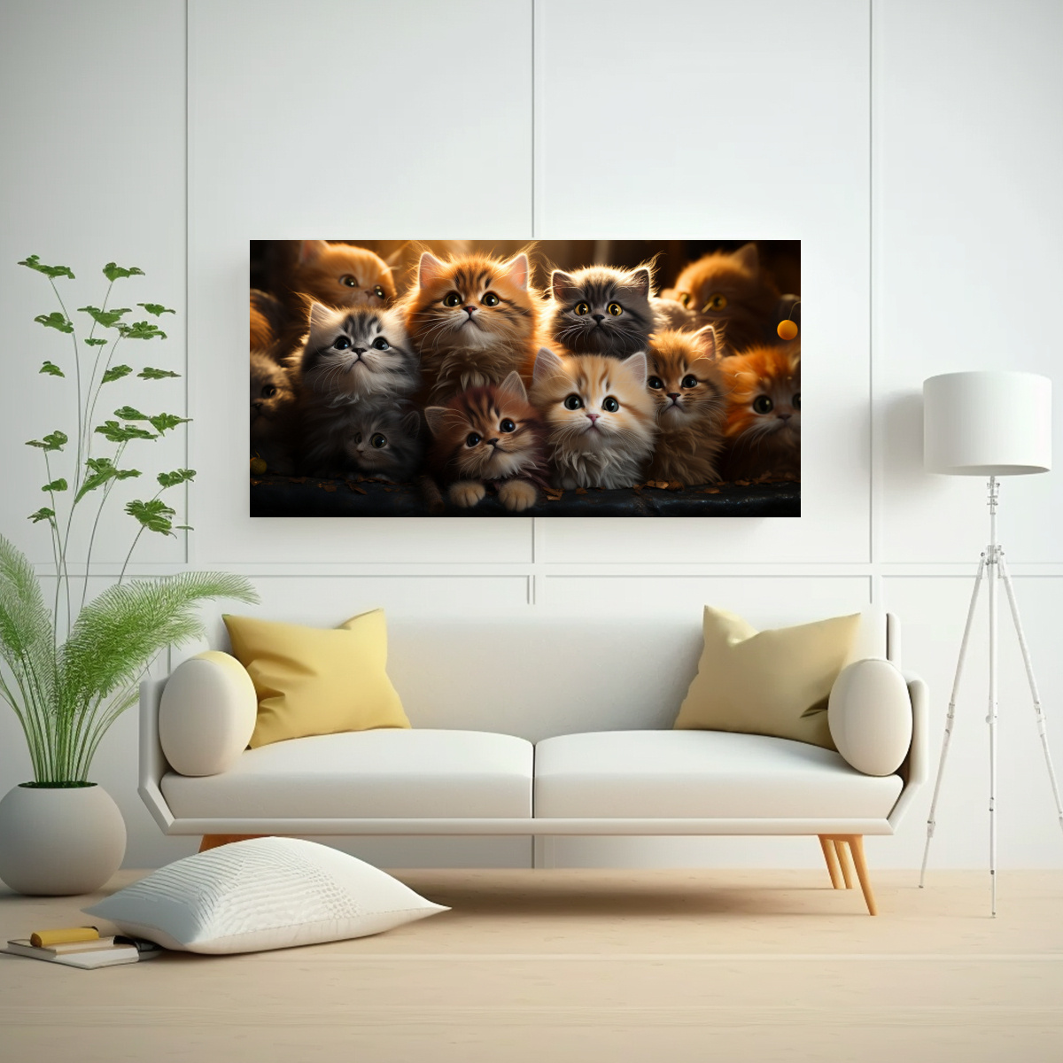 Coloca este cuadro en la sala de estar para crear un ambiente acogedor y alegre Combínalo con cojines en tonos neutros y acentos en azul marino para lograr una decoración equilibrada y encantadora ¡Deja que estos gatitos sonrientes te reciban con felicidad al llegar a casa!