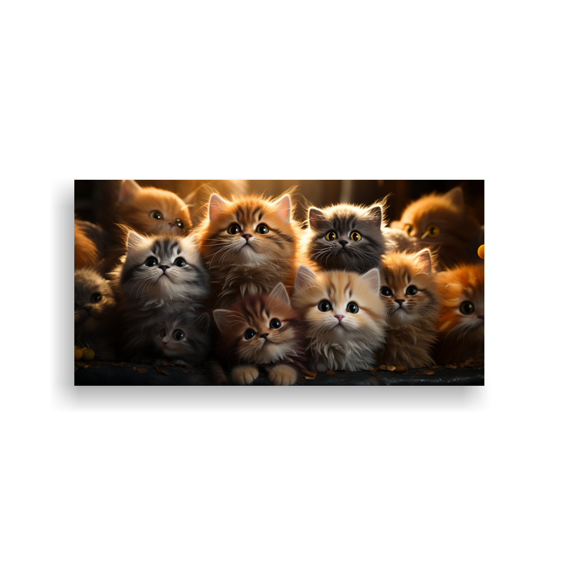 Dale a tu hogar un toque adorable con este cuadro de gatitos sonrientes en un fondo encantador La imagen de alta calidad impresa en tela y montada en un bastidor de madera garantiza durabilidad y elegancia ¡Renueva tu decoración con estilo y originalidad!