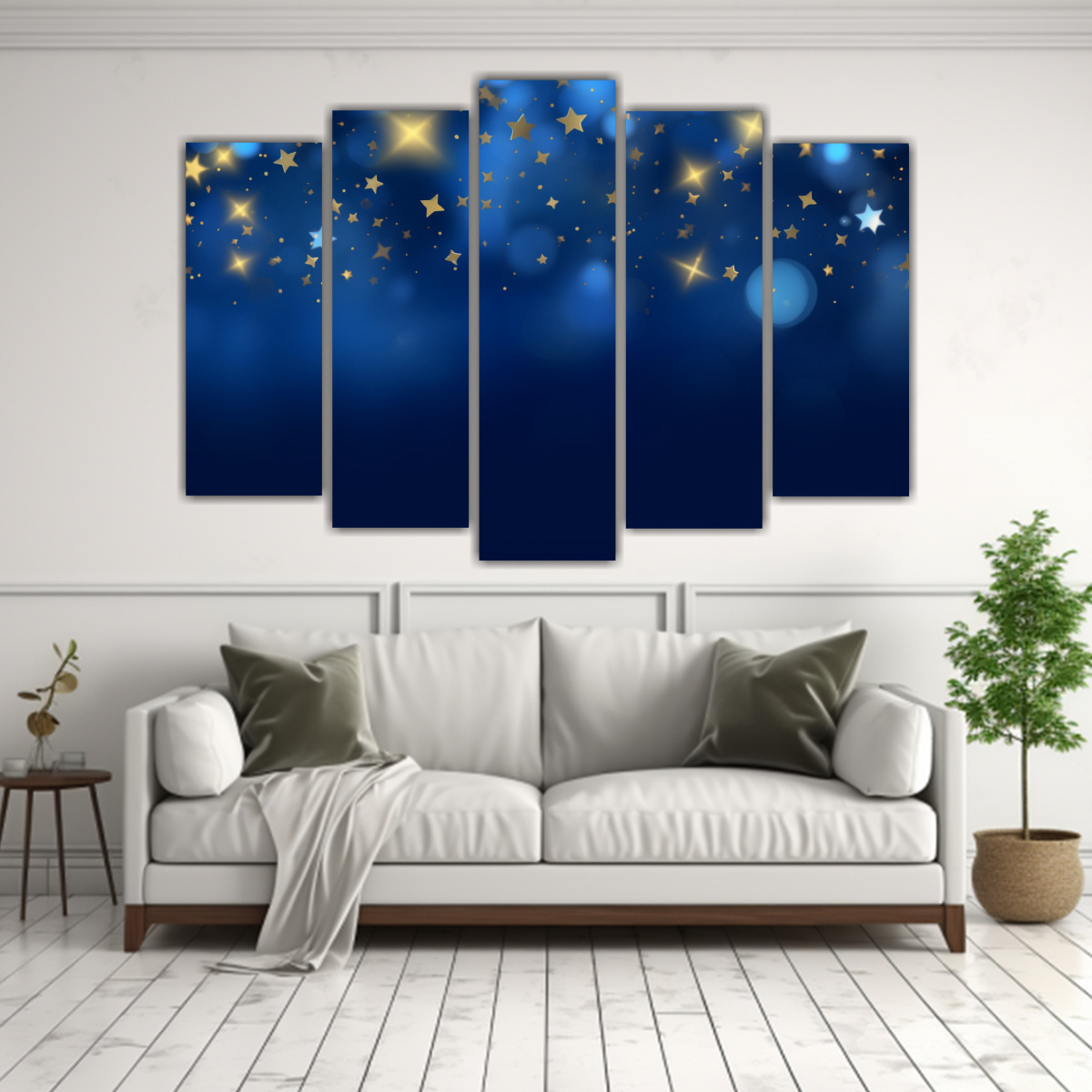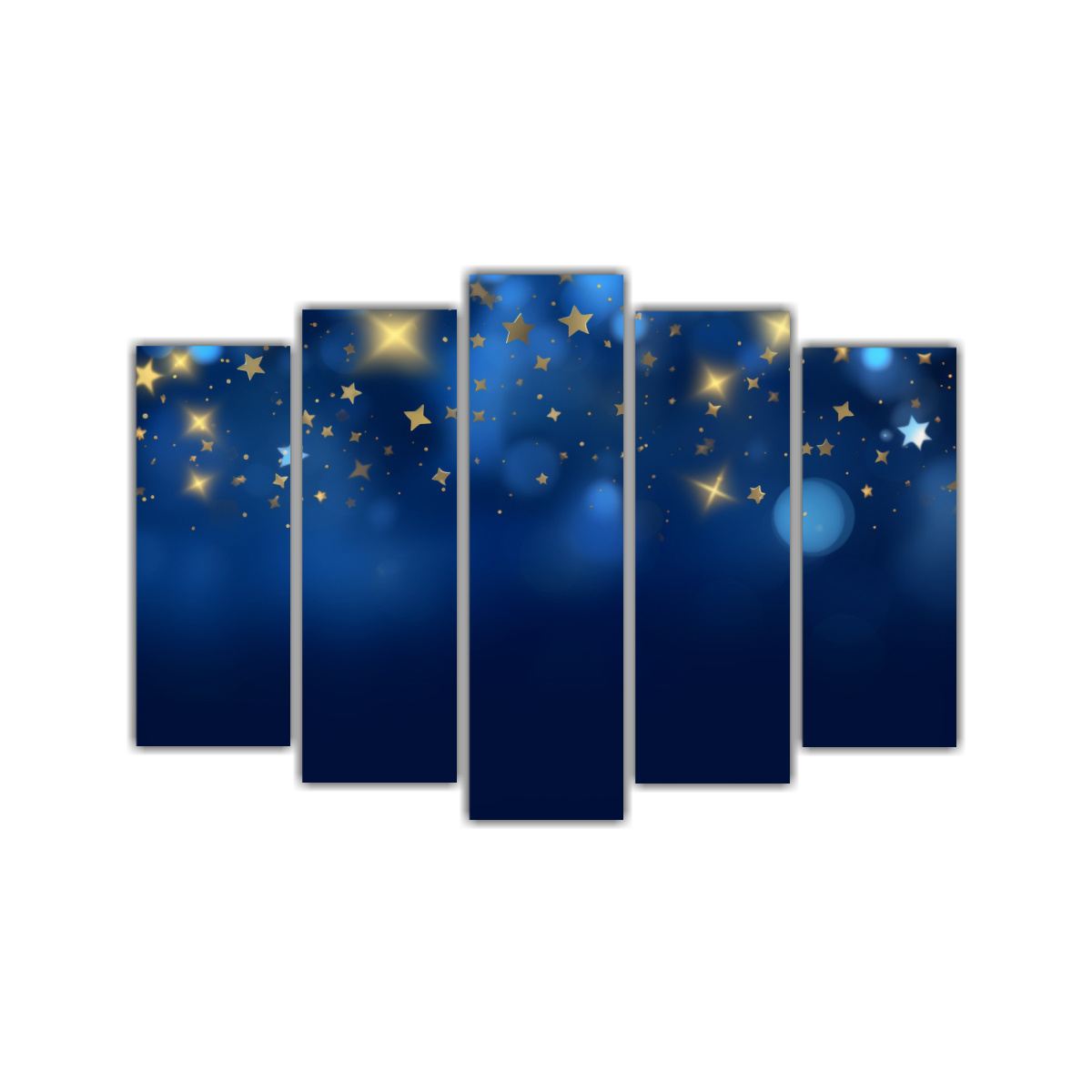 Cuadro Decorativo De Cinco Lienzos Con Tonos Brillantes En Fondo De Estrellas.