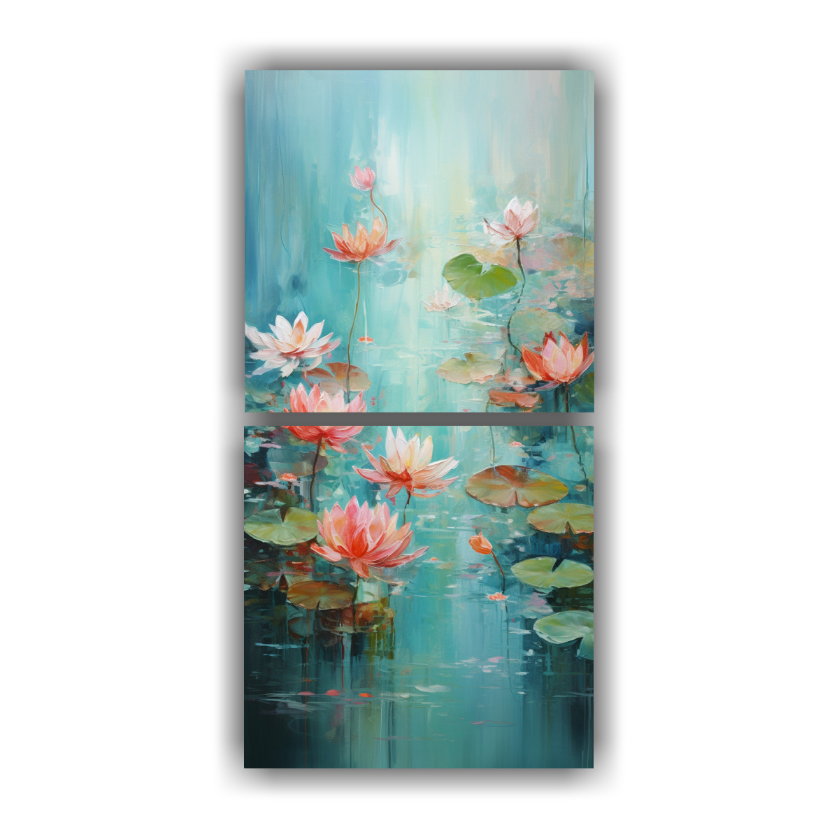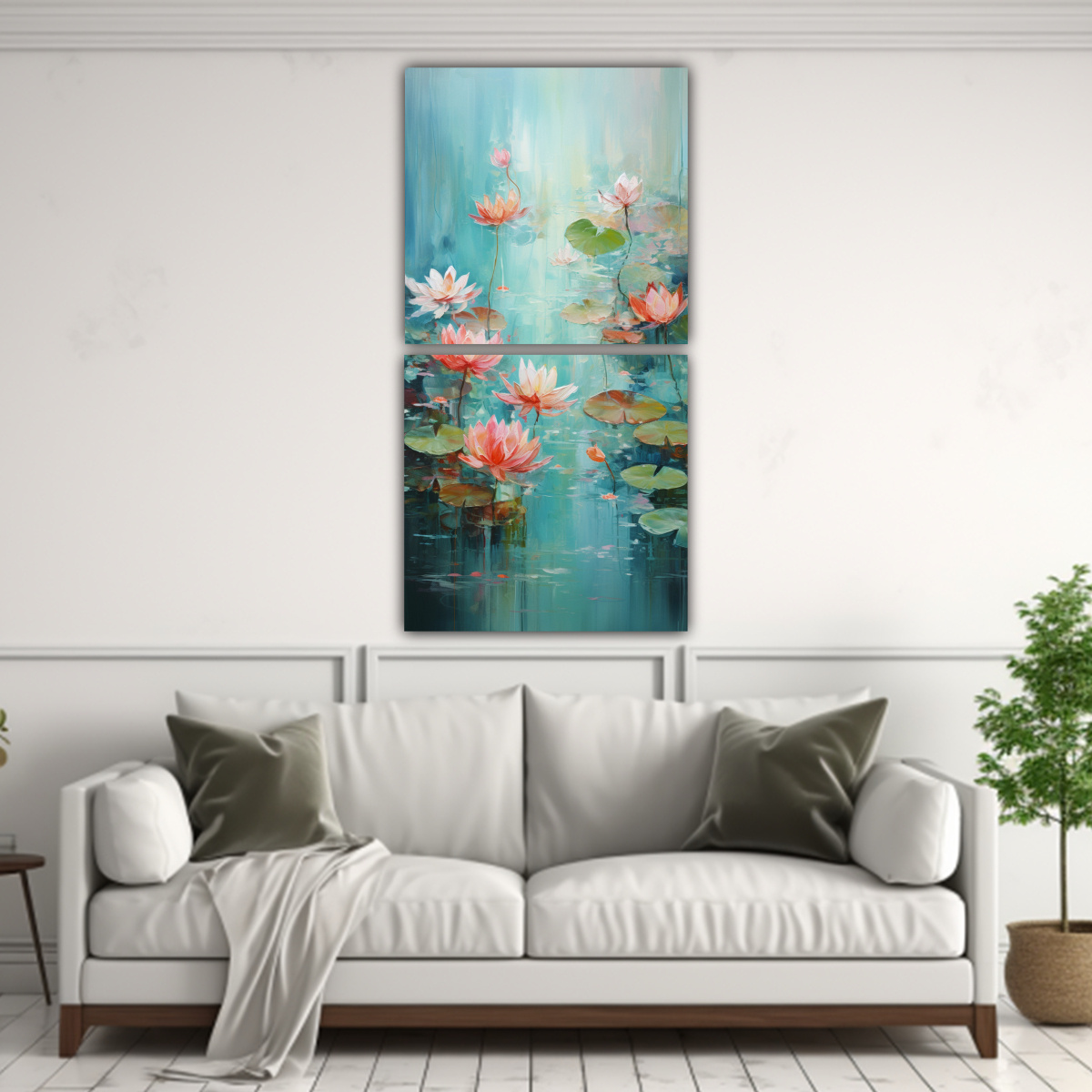 Coloca este cuadro en el salón de tu casa, justo encima del sofá, para crear un punto focal único Combínalo con muebles en tonos neutros y accesorios en colores que resalten los lirios y peces del cuadro, como cojines en tonos turquesa o grisáceo ¡Haz que tus invitados se maravillen con esta pieza de arte!