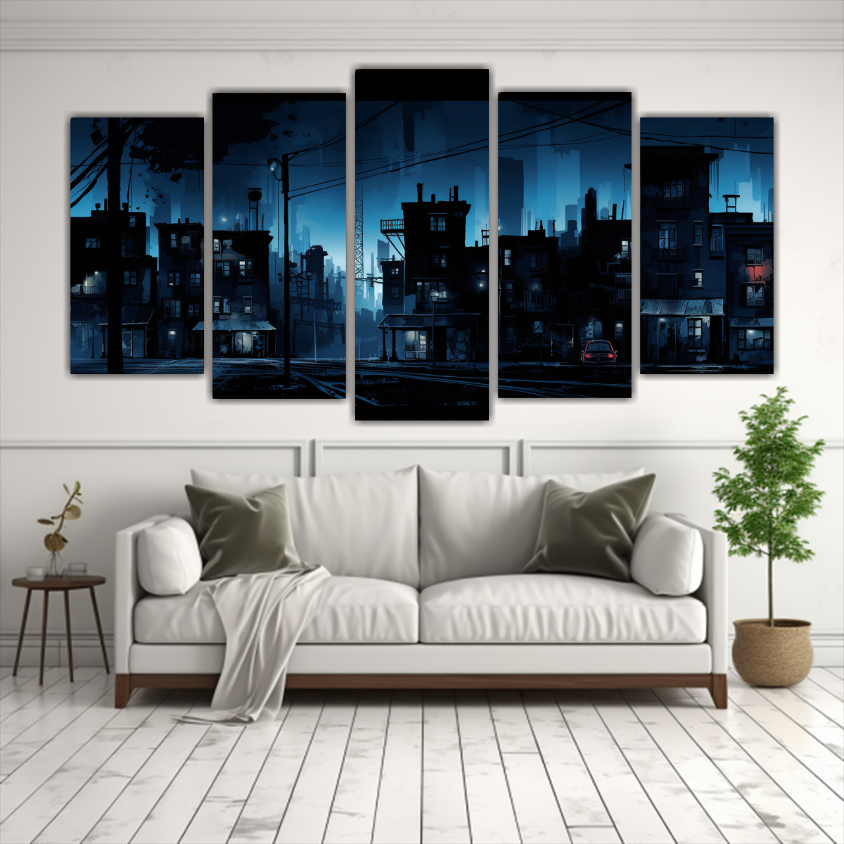 Coloca este cuadro en tu sala de estar para crear una atmósfera urbana y moderna Combínalo con muebles en tonos grises y azules para un estilo contemporáneo ¡Será el centro de atención de tus visitas!