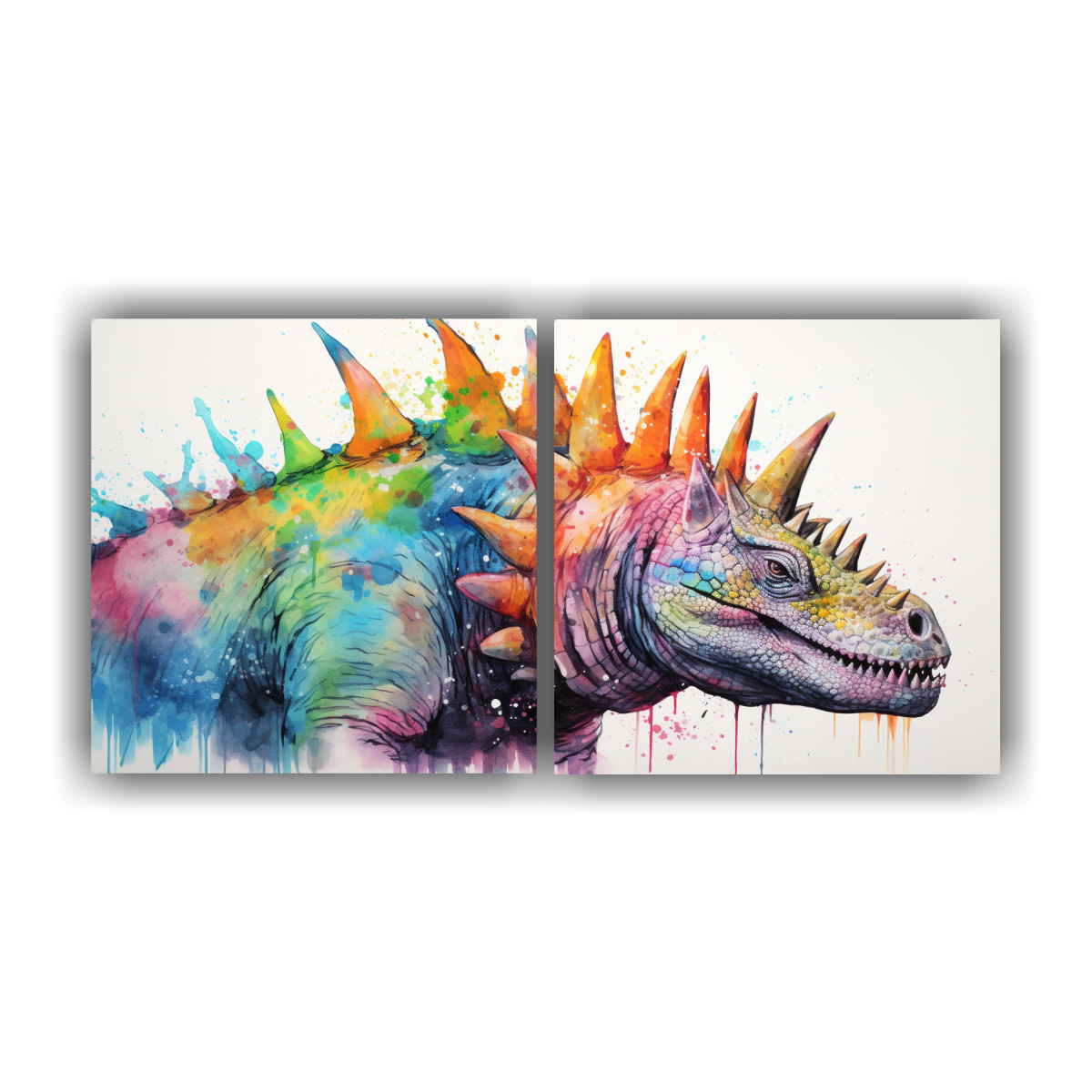 Cuadro Decorativo De Estegosaurio En Acuarela Vibrante Con Doble Tela