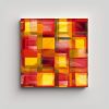 Cuadro Decorativo De Estilo Años 70 En Rojo Y Amarillo, Patrón A Cuadros, óleo En Lienzo
