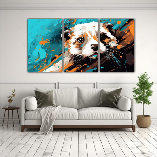 Cuadro Decorativo De Ferret En Marrón Y Turquesa Estilo Neo Pop.