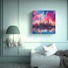 Cuadro Decorativo De Lienzo Impreso Con Buena Vibra De Skyline En Tonos Rosados Y Azules