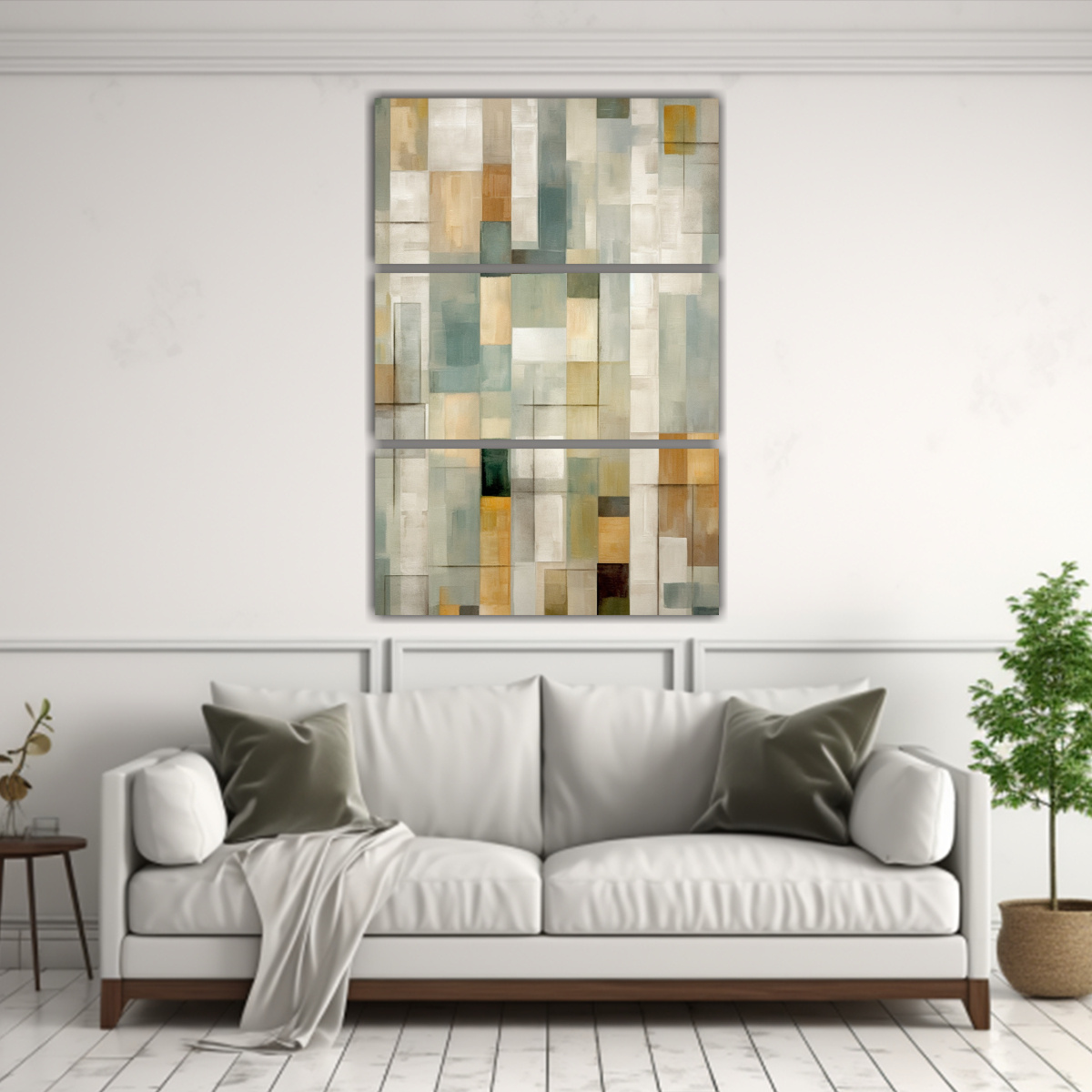 Cuadro Decorativo De Lienzo Natural Con Composición Serena De Rectángulos Superpuestos