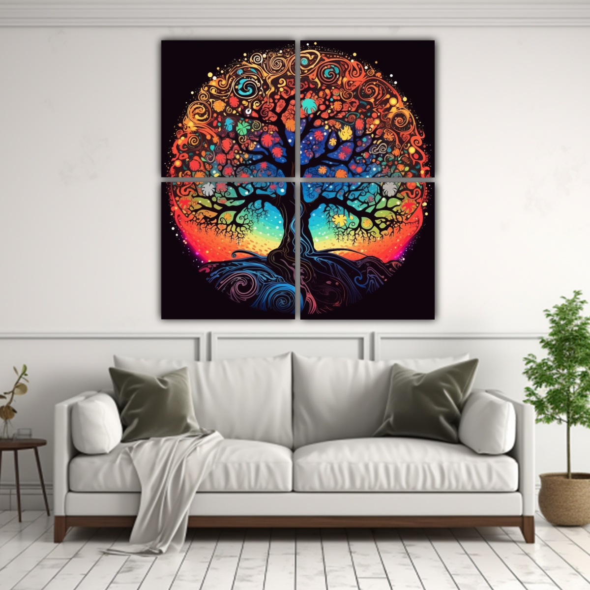Cuadro Decorativo De Lienzo Para Espacio De Diseño Con Decoración De Cuatro Lienzos De Calidad Sublimable.