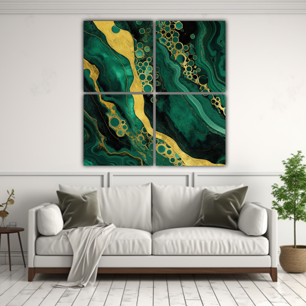 Cuadro Decorativo De Mármol Verde Esmeralda Y Dorado