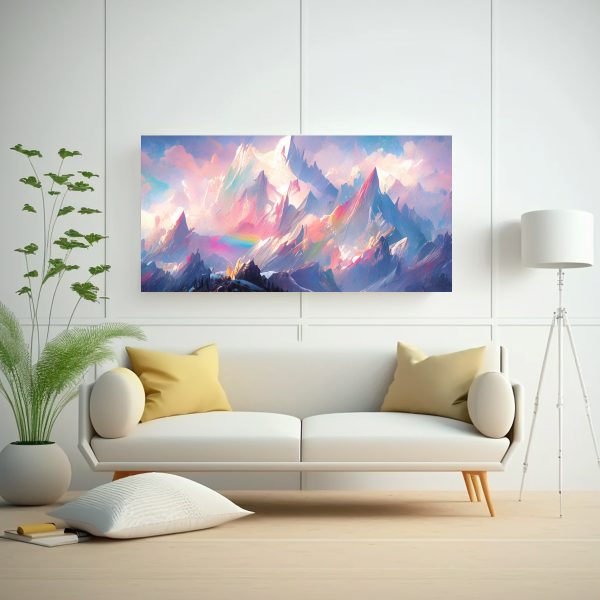 Dale vida a tus espacios con este cuadro único que captura la belleza de las montañas y el arcoíris Perfecto para salas de estar, dormitorios o lugares de relajación Atrévete a añadir un toque de color y naturaleza a tu hogar