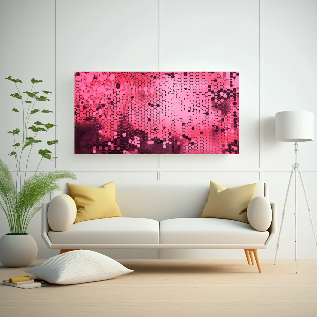 Cuadro Decorativo De Pared: Diseño Vanguardista En Papel Rosa Con Puntos Grabados.