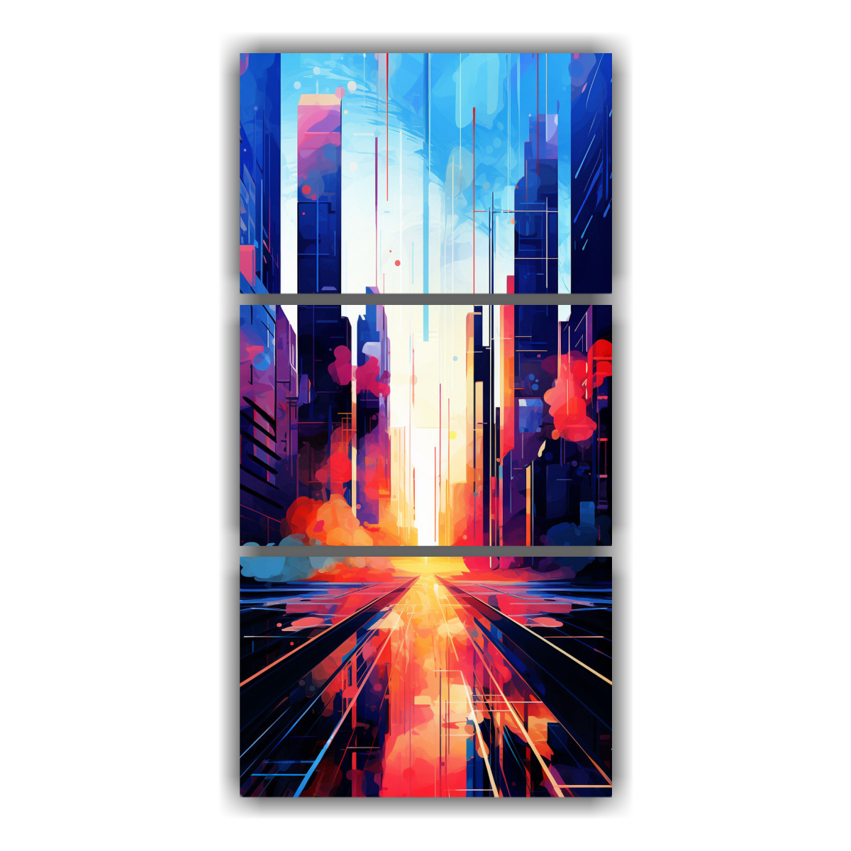 Cuadro Decorativo De Representación Abstracta De Una Ciudad Futurista Tres Artes Moderno