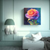 Cuadro Decorativo De Rosa En Óleo Pastel Sobre Lienzo Con Movimiento